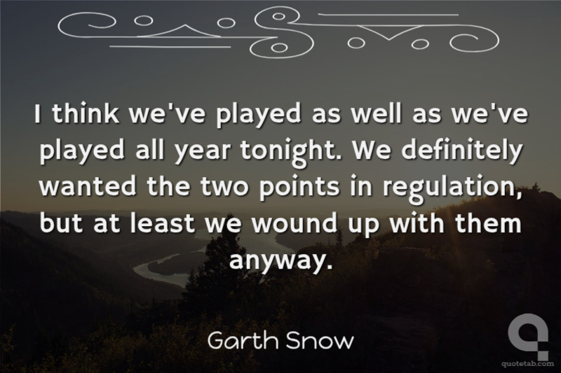 I think we've played as well as we've played all year tonight. We definitely wanted the two points in regulation, but at least we wound up with them anyway.