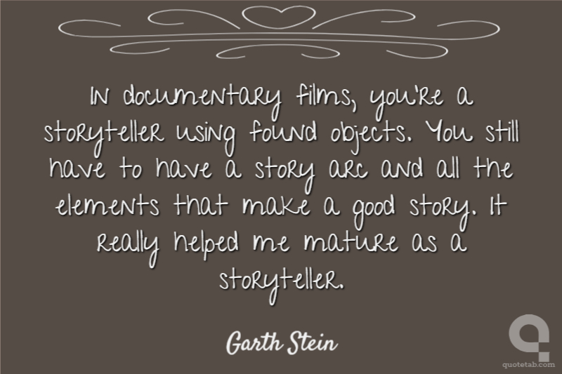 In documentary films, you're a storyteller using found objects. You still have to have a story arc and all the elements that make a good story. It really helped me mature as a storyteller.