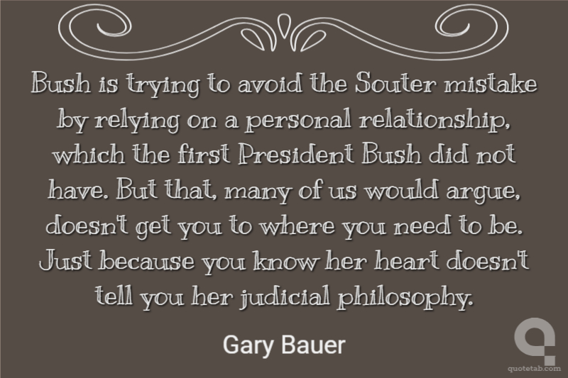 Bush is trying to avoid the Souter mistake by relying on a personal relationship, which the first President Bush did not have. But that, many of us would argue, doesn't get you to where you need to be. Just because you know her heart doesn't tell you her judicial philosophy.