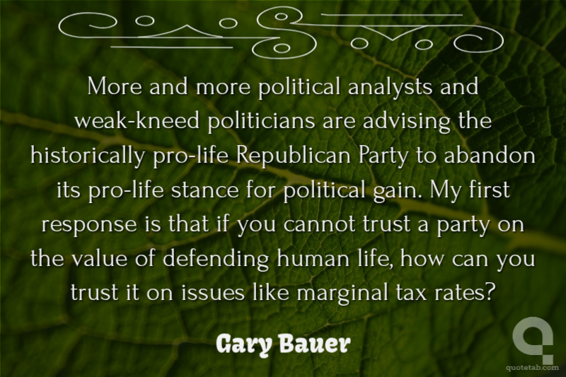 More and more political analysts and weak-kneed politicians are advising the historically pro-life Republican Party to abandon its pro-life stance for political gain. My first response is that if you cannot trust a party on the value of defending human life, how can you trust it on issues like marginal tax rates?