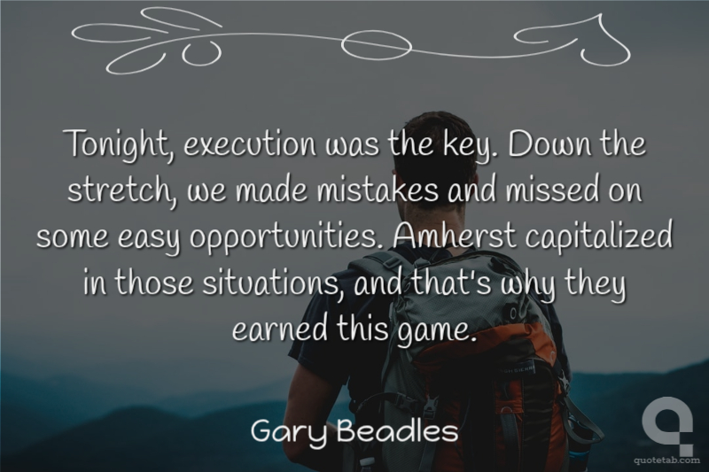 Tonight, execution was the key. Down the stretch, we made mistakes and missed on some easy opportunities. Amherst capitalized in those situations, and that's why they earned this game.
