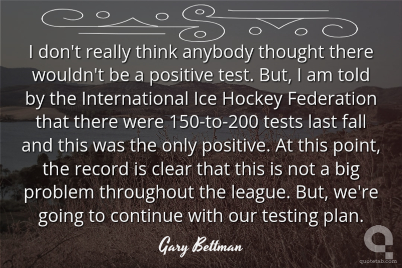 I don't really think anybody thought there wouldn't be a positive test. But, I am told by the International Ice Hockey Federation that there were 150-to-200 tests last fall and this was the only positive. At this point, the record is clear that this is not a big problem throughout the league. But, we're going to continue with our testing plan.