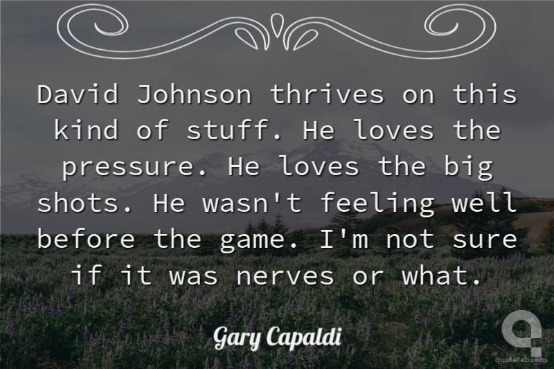 David Johnson thrives on this kind of stuff. He loves the pressure. He loves the big shots. He wasn't feeling well before the game. I'm not sure if it was nerves or what.