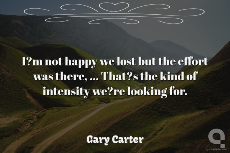 I?m not happy we lost but the effort was there, ... That?s the kind of intensity we?re looking for.
