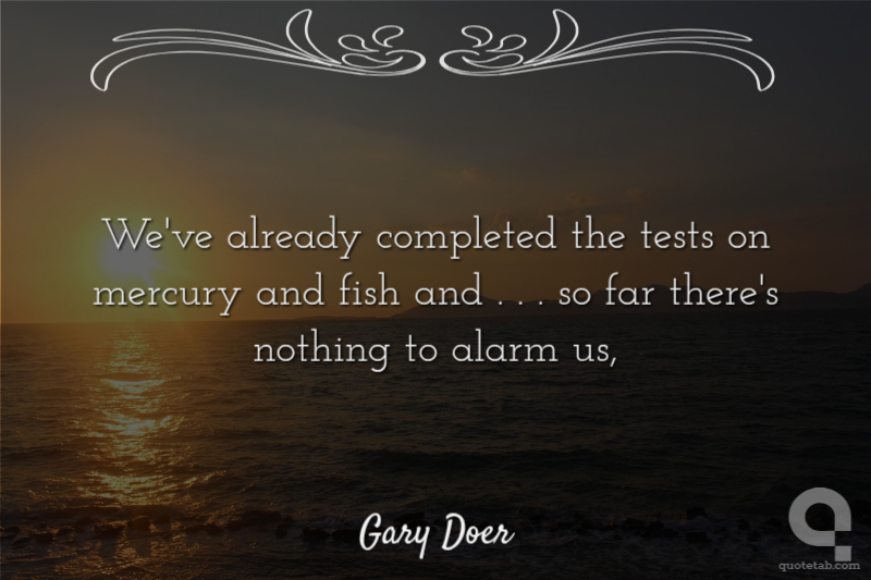 We've already completed the tests on mercury and fish and . . . so far there's nothing to alarm us,
