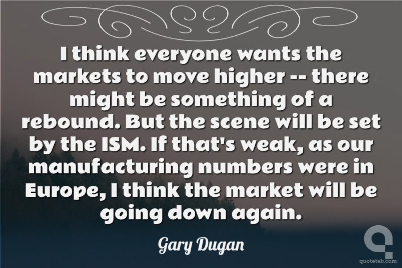 I think everyone wants the markets to move higher -- there might be something of a rebound. But the scene will be set by the ISM. If that's weak, as our manufacturing numbers were in Europe, I think the market will be going down again.