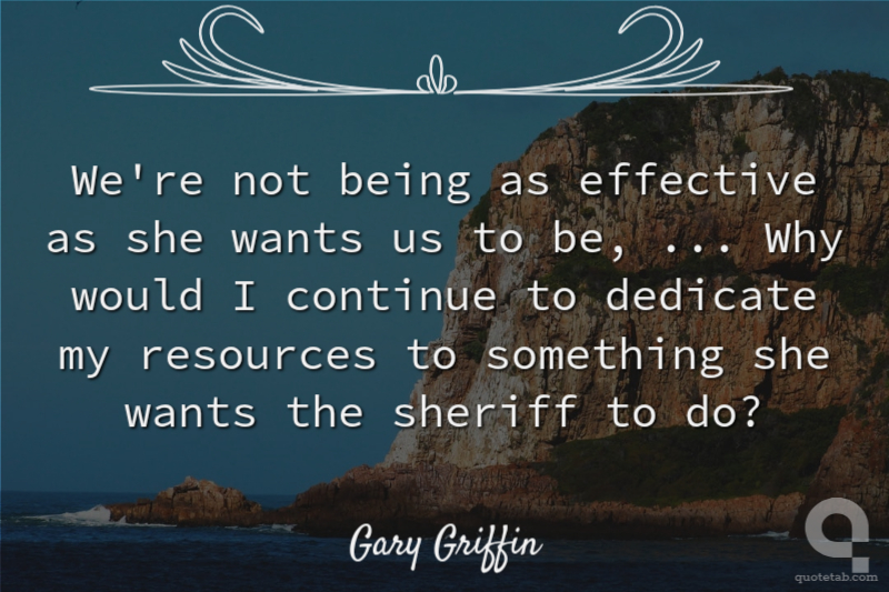 We're not being as effective as she wants us to be, ... Why would I continue to dedicate my resources to something she wants the sheriff to do?