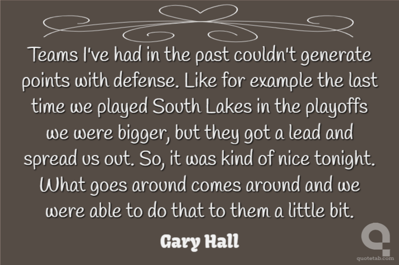 Teams I've had in the past couldn't generate points with defense. Like for example the last time we played South Lakes in the playoffs we were bigger, but they got a lead and spread us out. So, it was kind of nice tonight. What goes around comes around and we were able to do that to them a little bit.