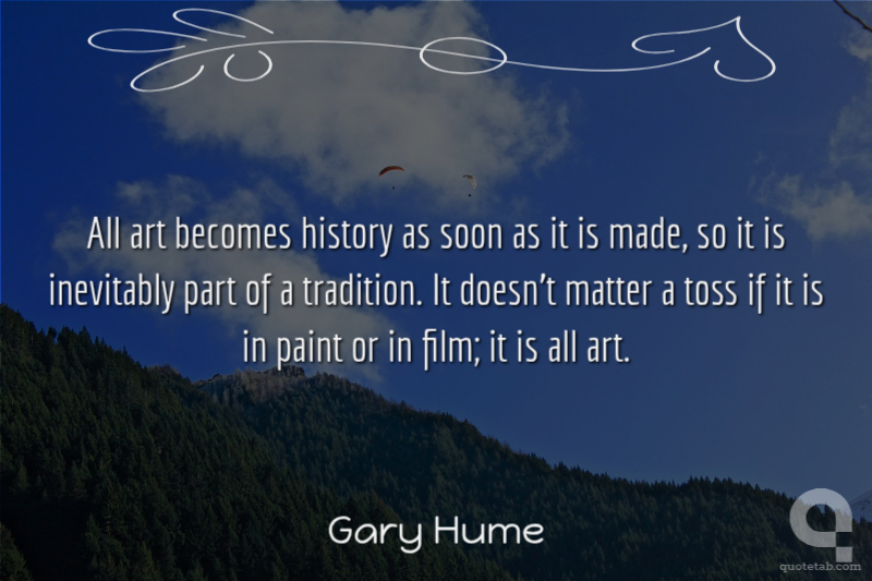 All art becomes history as soon as it is made, so it is inevitably part of a tradition. It doesn't matter a toss if it is in paint or in film; it is all art.