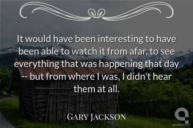 It would have been interesting to have been able to watch it from afar, to see everything that was happening that day -- but from where I was, I didn't hear them at all.