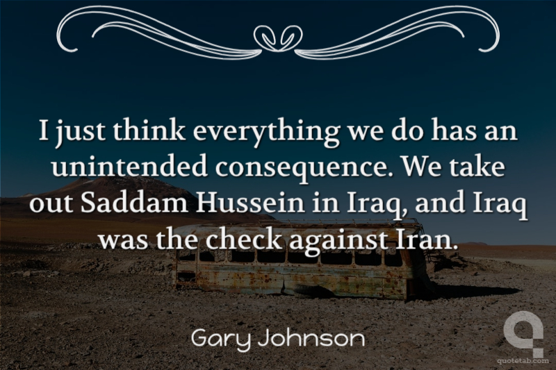 I just think everything we do has an unintended consequence. We take out Saddam Hussein in Iraq, and Iraq was the check against Iran.