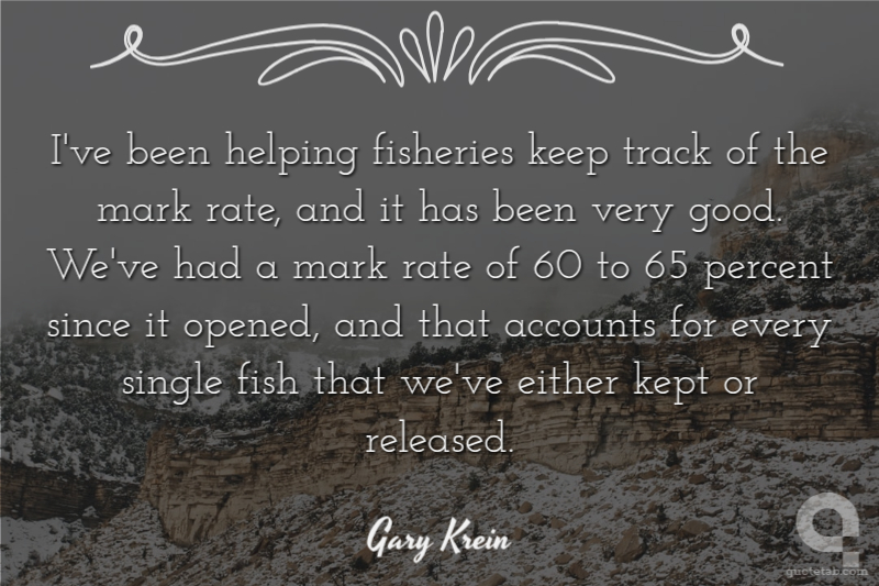 I've been helping fisheries keep track of the mark rate, and it has been very good. We've had a mark rate of 60 to 65 percent since it opened, and that accounts for every single fish that we've either kept or released.