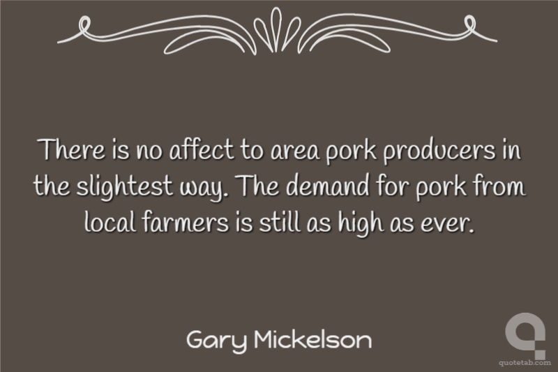 There is no affect to area pork producers in the slightest way. The demand for pork from local farmers is still as high as ever.