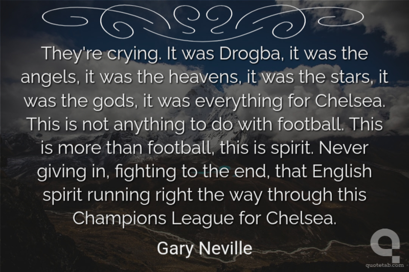 They're crying. It was Drogba, it was the angels, it was the heavens, it was the stars, it was the gods, it was everything for Chelsea. This is not anything to do with football. This is more than football, this is spirit. Never giving in, fighting to the end, that English spirit running right the way through this Champions League for Chelsea.