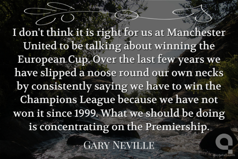 I don't think it is right for us at Manchester United to be talking about winning the European Cup. Over the last few years we have slipped a noose round our own necks by consistently saying we have to win the Champions League because we have not won it since 1999. What we should be doing is concentrating on the Premiership.