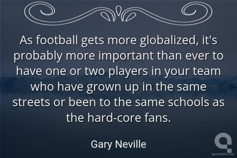 As football gets more globalized, it's probably more important than ever to have one or two players in your team who have grown up in the same streets or been to the same schools as the hard-core fans.