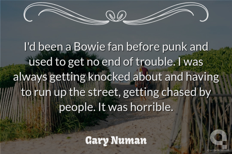 I'd been a Bowie fan before punk and used to get no end of trouble. I was always getting knocked about and having to run up the street, getting chased by people. It was horrible.