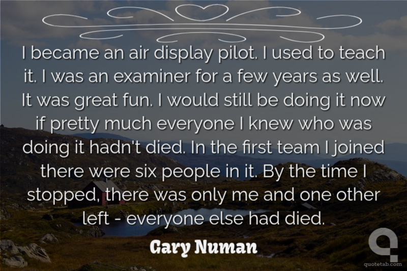 I became an air display pilot. I used to teach it. I was an examiner for a few years as well. It was great fun. I would still be doing it now if pretty much everyone I knew who was doing it hadn't died. In the first team I joined there were six people in it. By the time I stopped, there was only me and one other left - everyone else had died.