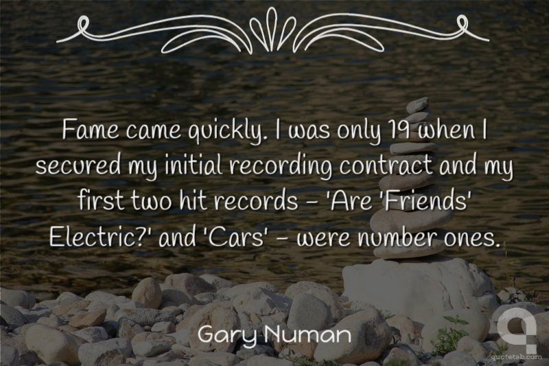Fame came quickly. I was only 19 when I secured my initial recording contract and my first two hit records - 'Are 'Friends' Electric?' and 'Cars' - were number ones.