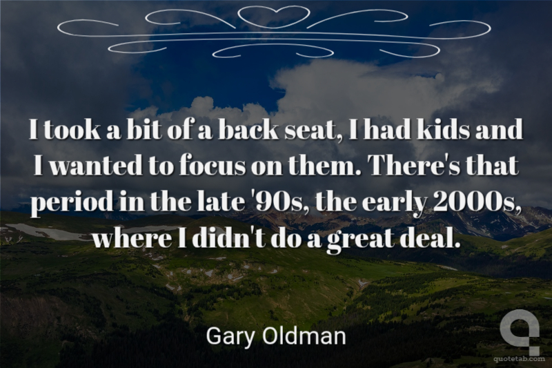 I took a bit of a back seat, I had kids and I wanted to focus on them. There's that period in the late '90s, the early 2000s, where I didn't do a great deal.