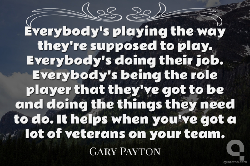 Everybody's playing the way they're supposed to play. Everybody's doing their job. Everybody's being the role player that they've got to be and doing the things they need to do. It helps when you've got a lot of veterans on your team.
