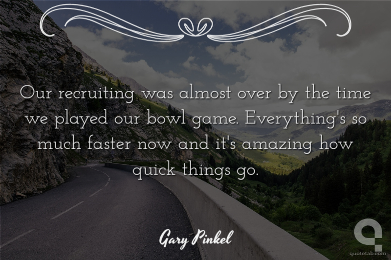 Our recruiting was almost over by the time we played our bowl game. Everything's so much faster now and it's amazing how quick things go.