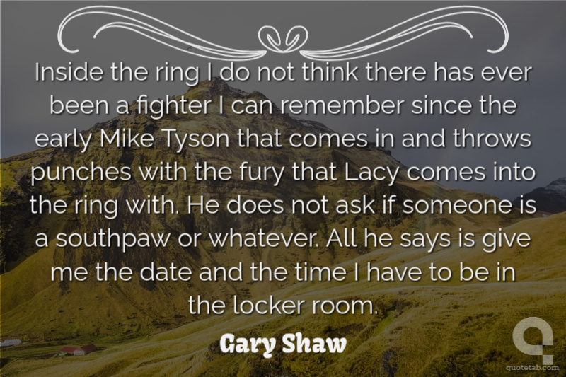 Inside the ring I do not think there has ever been a fighter I can remember since the early Mike Tyson that comes in and throws punches with the fury that Lacy comes into the ring with. He does not ask if someone is a southpaw or whatever. All he says is give me the date and the time I have to be in the locker room.