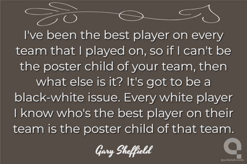 I've been the best player on every team that I played on, so if I can't be the poster child of your team, then what else is it? It's got to be a black-white issue. Every white player I know who's the best player on their team is the poster child of that team.