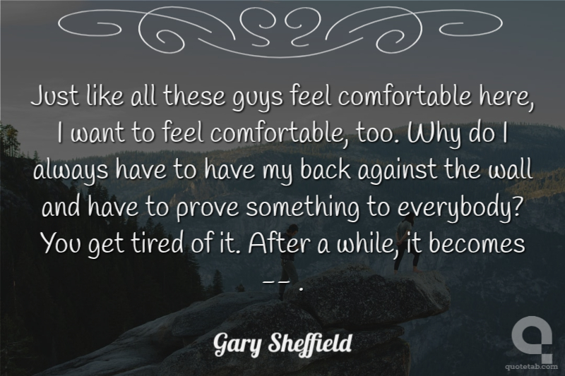 Just like all these guys feel comfortable here, I want to feel comfortable, too. Why do I always have to have my back against the wall and have to prove something to everybody? You get tired of it. After a while, it becomes -- .