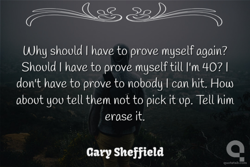 Why should I have to prove myself again? Should I have to prove myself till I'm 40? I don't have to prove to nobody I can hit. How about you tell them not to pick it up. Tell him erase it.