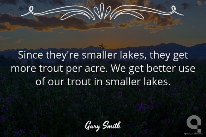 Since they're smaller lakes, they get more trout per acre. We get better use of our trout in smaller lakes.
