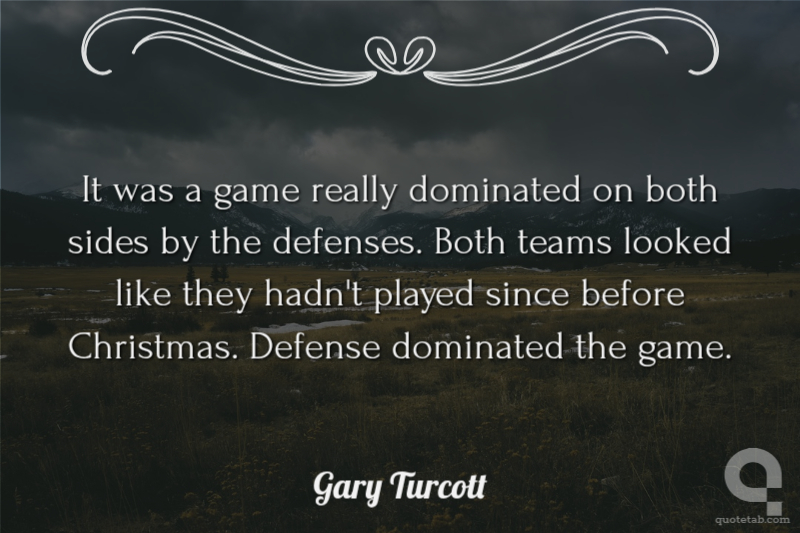 It was a game really dominated on both sides by the defenses. Both teams looked like they hadn't played since before Christmas. Defense dominated the game.