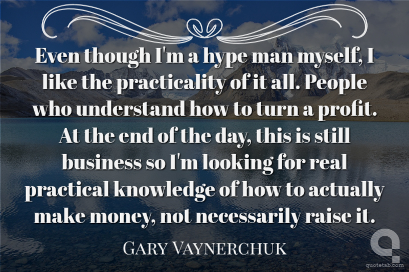 Even though I'm a hype man myself, I like the practicality of it all. People who understand how to turn a profit. At the end of the day, this is still business so I'm looking for real practical knowledge of how to actually make money, not necessarily raise it.