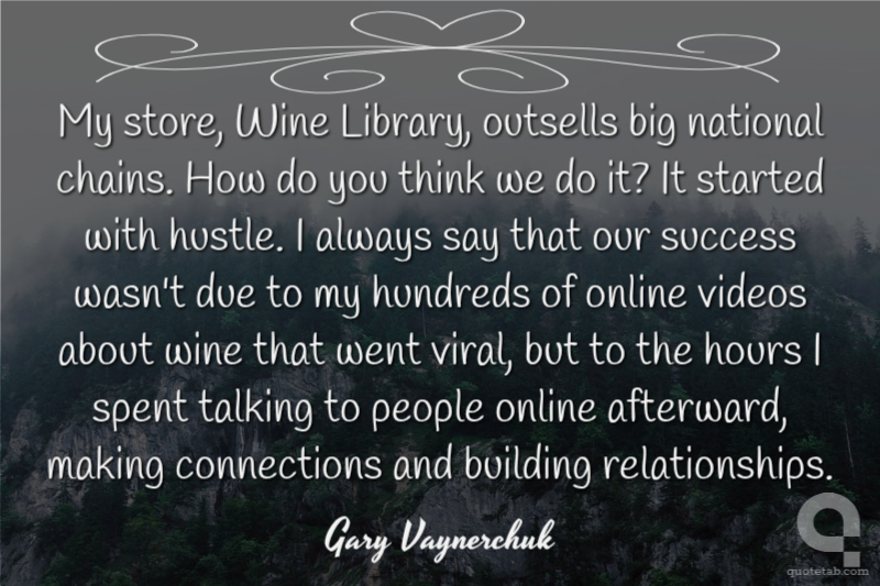 My store, Wine Library, outsells big national chains. How do you think we do it? It started with hustle. I always say that our success wasn't due to my hundreds of online videos about wine that went viral, but to the hours I spent talking to people online afterward, making connections and building relationships.