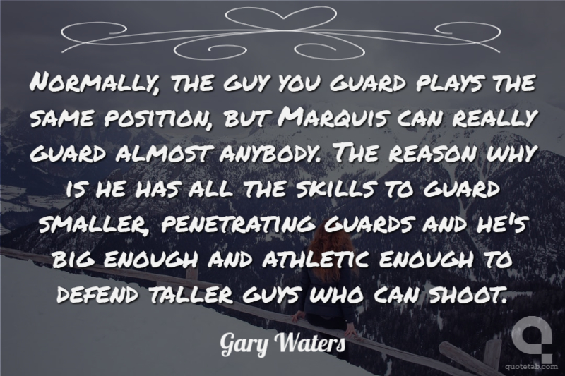 Normally, the guy you guard plays the same position, but Marquis can really guard almost anybody. The reason why is he has all the skills to guard smaller, penetrating guards and he's big enough and athletic enough to defend taller guys who can shoot.