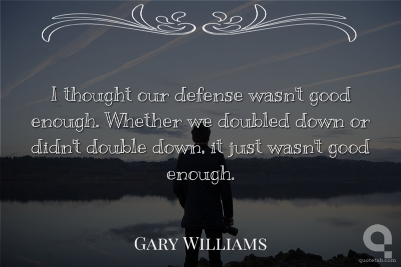 I thought our defense wasn't good enough. Whether we doubled down or didn't double down, it just wasn't good enough.