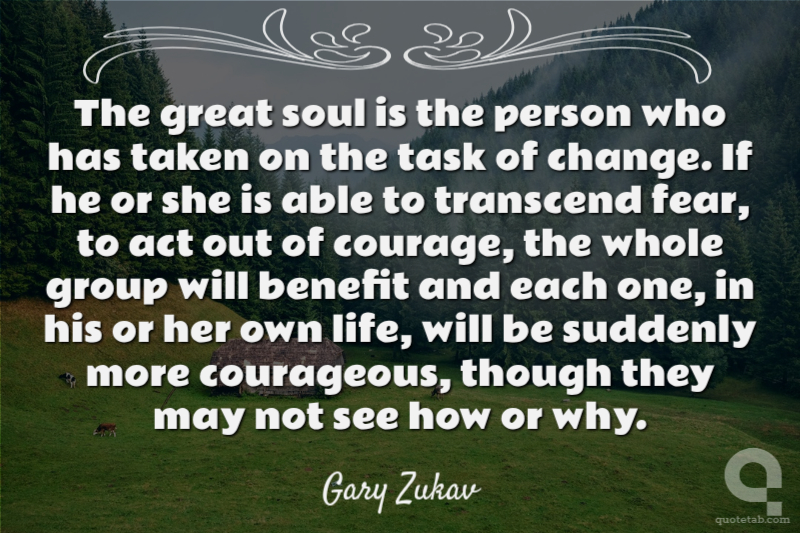 The great soul is the person who has taken on the task of change. If he or she is able to transcend fear, to act out of courage, the whole group will benefit and each one, in his or her own life, will be suddenly more courageous, though they may not see how or why.