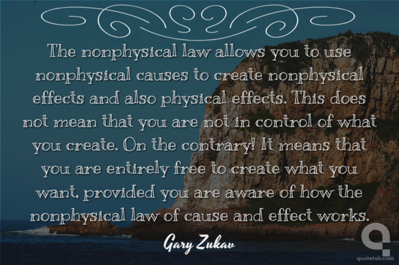 The nonphysical law allows you to use nonphysical causes to create nonphysical effects and also physical effects. This does not mean that you are not in control of what you create. On the contrary! It means that you are entirely free to create what you want, provided you are aware of how the nonphysical law of cause and effect works.