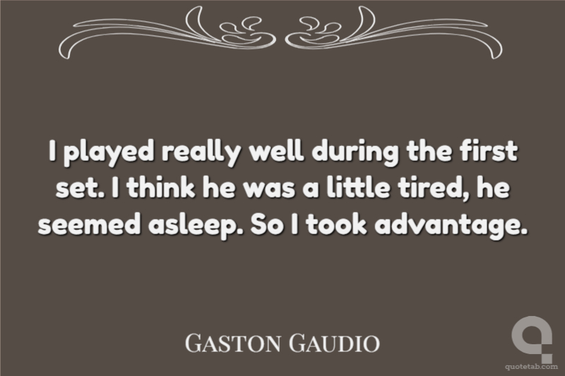 I played really well during the first set. I think he was a little tired, he seemed asleep. So I took advantage.