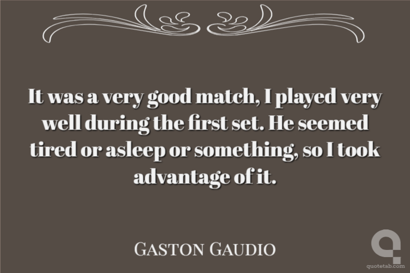 It was a very good match, I played very well during the first set. He seemed tired or asleep or something, so I took advantage of it.