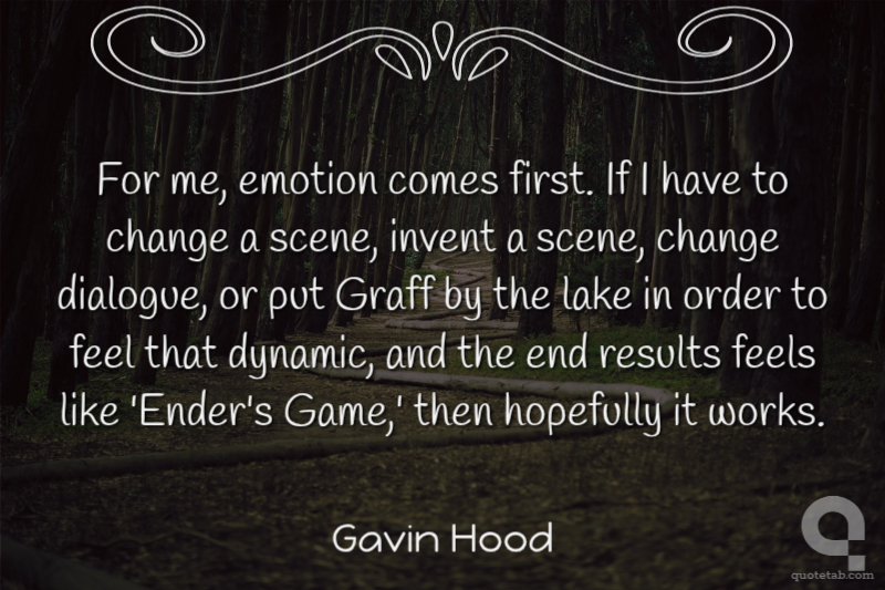 For me, emotion comes first. If I have to change a scene, invent a scene, change dialogue, or put Graff by the lake in order to feel that dynamic, and the end results feels like 'Ender's Game,' then hopefully it works.