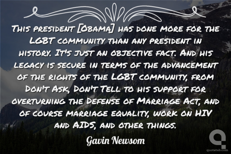 This president [Obama] has done more for the LGBT community than any president in history. It's just an objective fact. And his legacy is secure in terms of the advancement of the rights of the LGBT community, from Don't Ask, Don't Tell to his support for overturning the Defense of Marriage Act, and of course marriage equality, work on HIV and AIDS, and other things.
