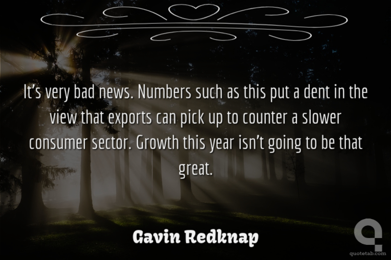 It's very bad news. Numbers such as this put a dent in the view that exports can pick up to counter a slower consumer sector. Growth this year isn't going to be that great.