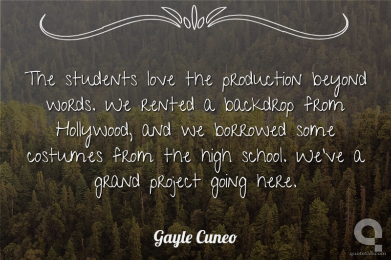 The students love the production beyond words. We rented a backdrop from Hollywood, and we borrowed some costumes from the high school. We've a grand project going here.
