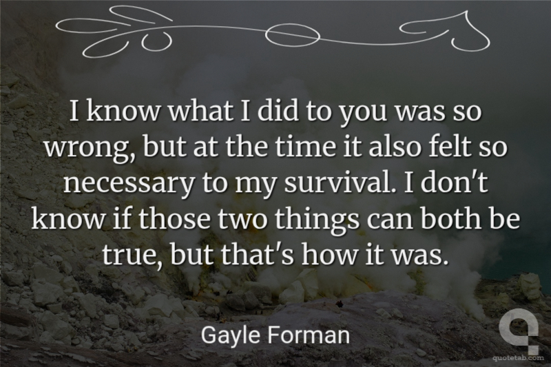 I know what I did to you was so wrong, but at the time it also felt so necessary to my survival. I don't know if those two things can both be true, but that's how it was.