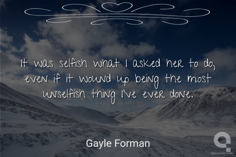 It was selfish what I asked her to do, even if it wound up being the most unselfish thing I've ever done.