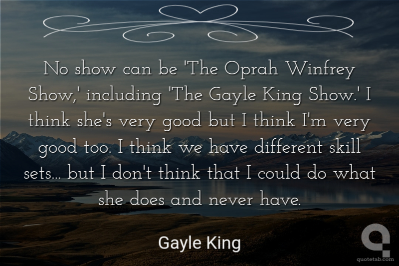 No show can be 'The Oprah Winfrey Show,' including 'The Gayle King Show.' I think she's very good but I think I'm very good too. I think we have different skill sets... but I don't think that I could do what she does and never have.