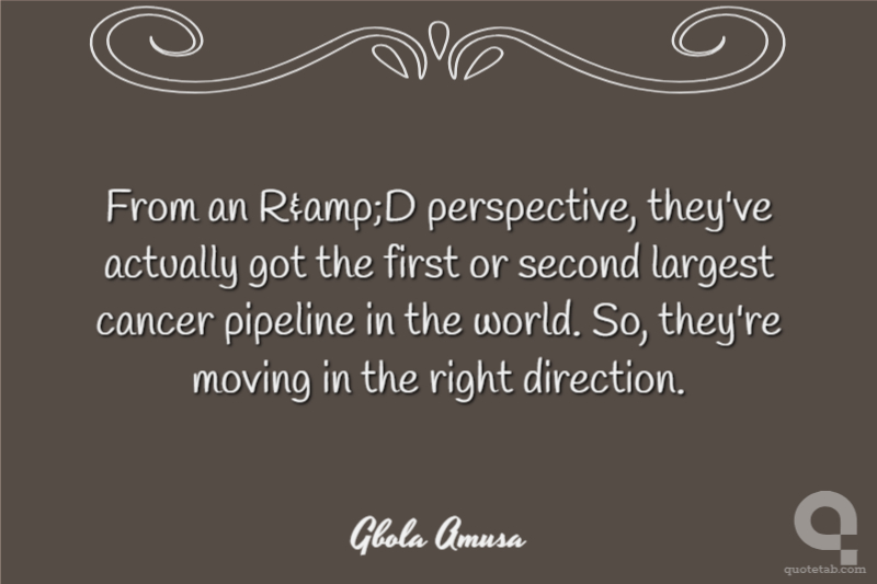 From an R&D perspective, they've actually got the first or second largest cancer pipeline in the world. So, they're moving in the right direction.