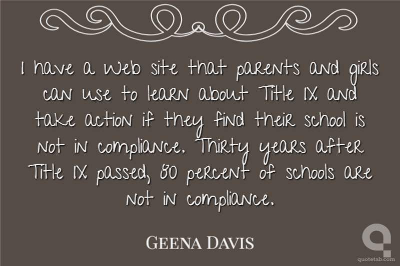 I have a Web site that parents and girls can use to learn about Title IX and take action if they find their school is not in compliance. Thirty years after Title IX passed, 80 percent of schools are not in compliance.