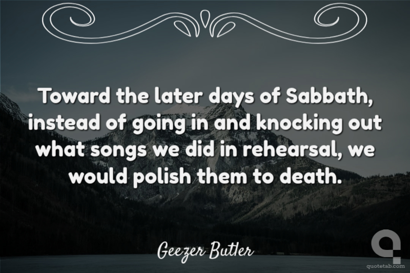 Toward the later days of Sabbath, instead of going in and knocking out what songs we did in rehearsal, we would polish them to death.